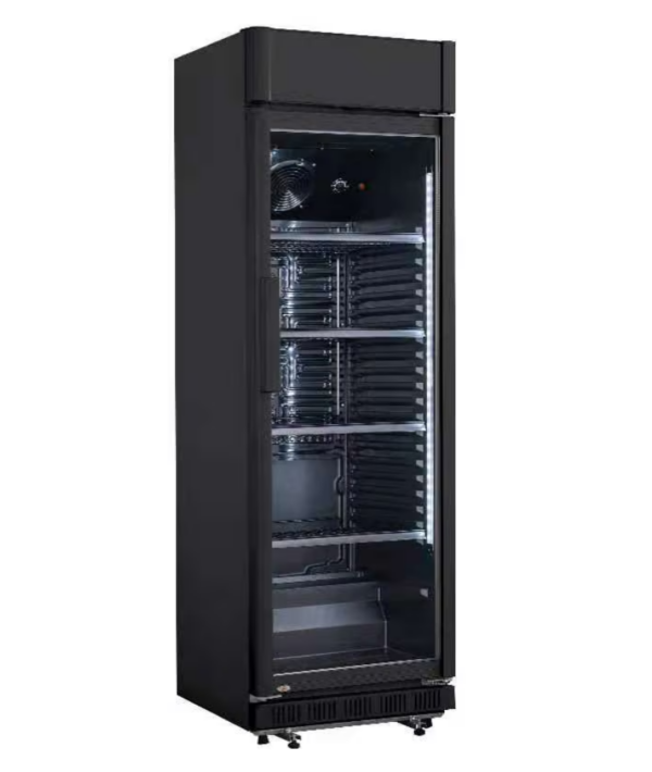 beleuchtetes Display, Temperatur: +2° / +8°C, abschließbar. 230 V / 2 kW, Innenbeleuchtung LED, Umluftventilator